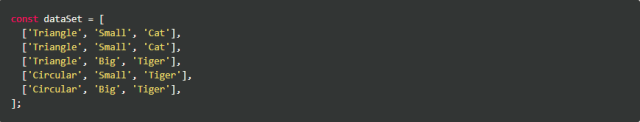 在程序中将使用数组的形式来表示上列数据,我把它称为「抓虎的数据集」: